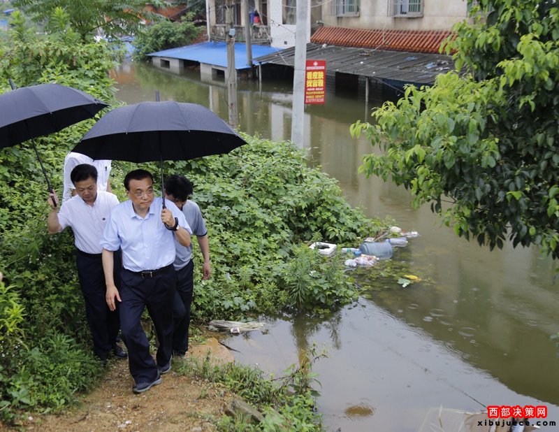 7月6日一早,李克強總理從湖南岳陽乘高鐵急赴湖北武漢,一路上大雨如注??偫硪幌萝?,直奔青山區(qū)長江干堤倒口湖堤段管涌現(xiàn)場指揮搶險救災(zāi)。