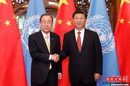 習(xí)近平歡迎潘基文秘書長(zhǎng)第十次訪華,并積極評(píng)價(jià)潘基文擔(dān)任聯(lián)合國(guó)秘書長(zhǎng)10年來(lái)為維護(hù)世界和平、促進(jìn)國(guó)際社會(huì)可持續(xù)發(fā)展、應(yīng)對(duì)氣候變化等全球性挑戰(zhàn)所作努力,為加強(qiáng)聯(lián)合國(guó)同中國(guó)合作所作貢獻(xiàn)。習(xí)近平指出,當(dāng)前中國(guó)同聯(lián)合國(guó)合作不斷深化。作為聯(lián)合國(guó)安理會(huì)常任理事國(guó)和最大的發(fā)展中國(guó)家,中國(guó)將繼續(xù)做聯(lián)合國(guó)的堅(jiān)定支持者、維護(hù)者、參與者。