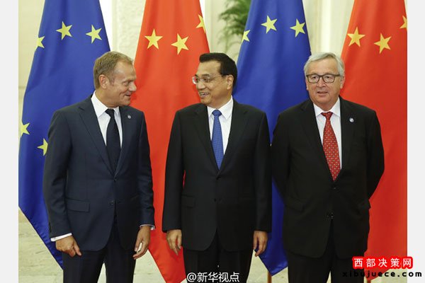 新華網(wǎng)北京7月12日電國務(wù)院總理李克強(qiáng)12日下午與歐洲理事會(huì)主席圖斯克、歐盟委員會(huì)主席容克共同主持第十八次中國歐盟領(lǐng)導(dǎo)人會(huì)晤。雙方就鞏固中歐政治互信、穩(wěn)步落實(shí)合作共識(shí)、加強(qiáng)國際和地區(qū)事務(wù)中的溝通與協(xié)調(diào)等深入交換意見。(據(jù)新華社“新華視點(diǎn)”微博報(bào)道)