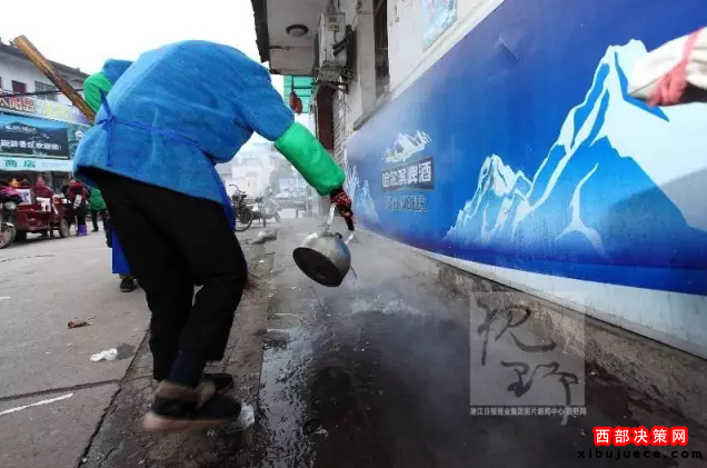 每天收完攤,毛奶奶不忘清掃地面,并用熱水沖洗