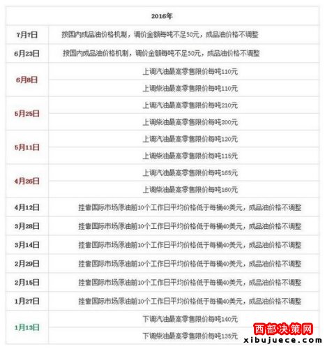 國家發(fā)改委歷次成品油價格調整匯總表。來源:隆眾石化網(wǎng)