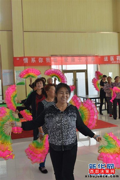 準格爾旗巴潤哈岱村村民在村里的文化活動室表演自導自演的節(jié)目(9月24日攝)。
