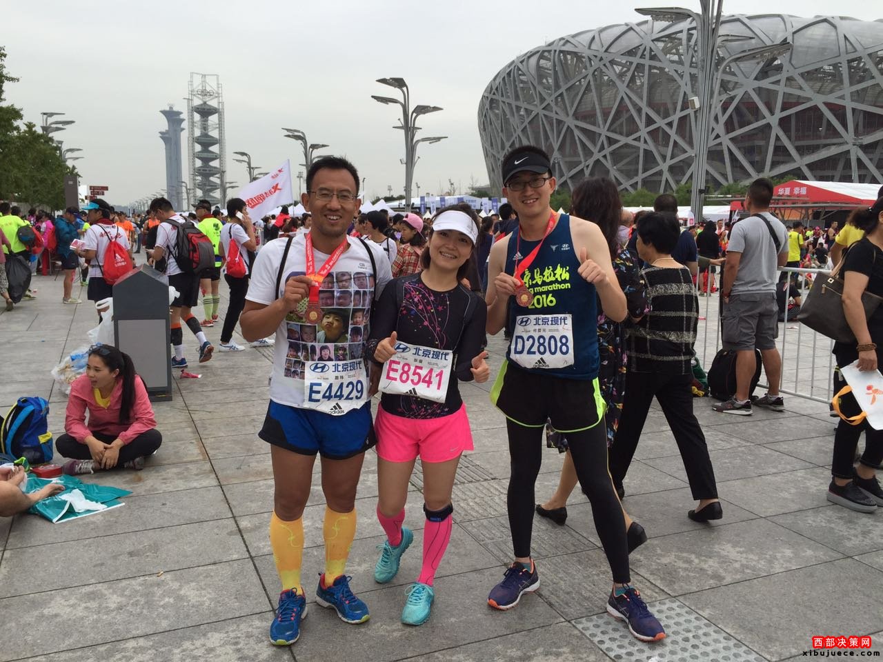 西部決策網(wǎng)甘肅訊(帥華鋒 杜杰)9月17日,2016北京現(xiàn)代北京馬拉松賽事于天安門正式鳴槍起跑,來自全球30多個(gè)國家和地區(qū)的3萬名跑者沿長安街西行,途經(jīng)復(fù)興門橋、昆玉河、海淀南路等地,向位于奧林匹克森林公園中心慶典廣場的終點(diǎn)線發(fā)起沖擊。經(jīng)過頑強(qiáng)拼搏,甘肅蘭馬跑團(tuán)出色的完成了全部賽事,并取得個(gè)人最佳成績。