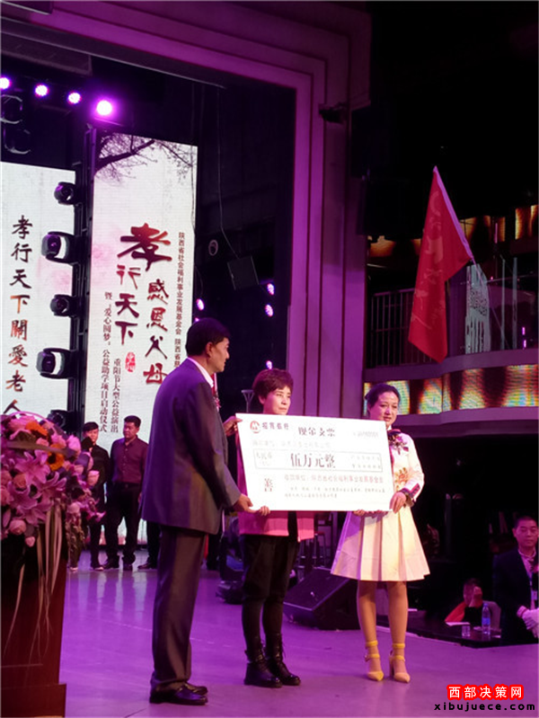 西部決策網(wǎng)訊 我國傳統(tǒng)的節(jié)日“九九重陽”也是“老人節(jié)”。值此佳節(jié)良晨,在西安金翅鳥演藝隆重舉行了由陜西省民政廳指導,陜西省社會福利事業(yè)發(fā)展基金會攜手陜西省慈善協(xié)會聯(lián)合主辦,陜西省社會福利發(fā)展基金會主持人專項基金委員會、陜西賓悅文化傳媒有限公司承辦,以及陜西省社會福利事業(yè)發(fā)展基金會陜北力量專項基金委員會、陜西省社會福利事業(yè)發(fā)展基金會關公文化專項基金委員會、陜西省社會福利事業(yè)發(fā)展基金會陜北民歌專項基金委員會、陜西省社會福利事業(yè)發(fā)展基金會影視文化專項基金委員會聯(lián)合協(xié)辦的“孝行天下感恩父母”大型公益演出暨“愛心圓夢”公益助學項目隆重啟動。