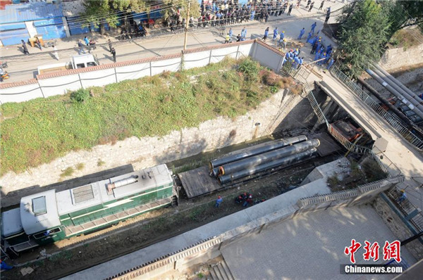 10月11日上午,山西太原鋼鐵集團(tuán)一列運(yùn)輸火車撞上一座跨鐵路橋,致橋梁半幅坍塌,5名未成年人受傷,一人傷勢(shì)較重。目前,事發(fā)地被藍(lán)色鐵皮封閉圍擋,禁止通行。太鋼集團(tuán)已組織人員對(duì)殘損橋梁進(jìn)行全面拆除,并調(diào)集山西省人民醫(yī)院和山西醫(yī)科大學(xué)第一附屬醫(yī)院的專家進(jìn)行醫(yī)療支援。