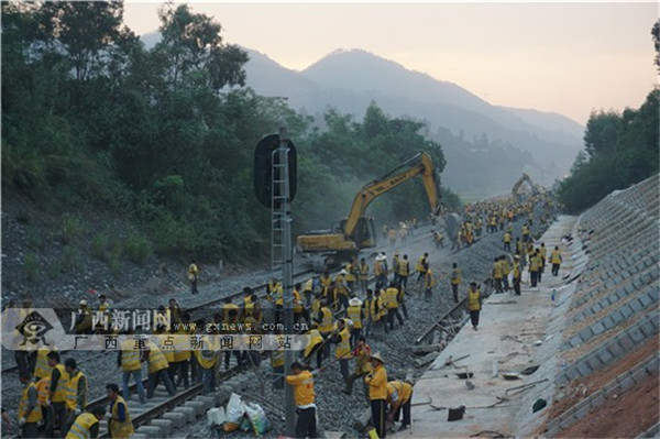 玉林市高鐵開通問題一直以來備受關(guān)注。12日,記者從南寧鐵路局了解到:10月11日凌晨,經(jīng)過2300多名鐵路施工人員5個多小時的連續(xù)作業(yè),黎湛鐵路電氣化改造工程貴港(根竹)至玉林段最后一處線路撥接施工順利完成。至此,該線路涉及的52處線路撥接改造全部完成,為今年底線路開通奠定了重要基礎(chǔ)。