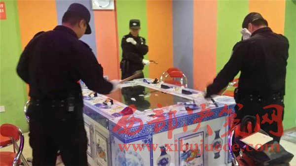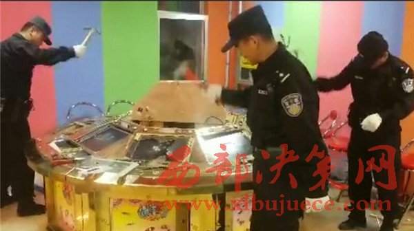16時(shí)整,城關(guān)公安分局治安管理一大隊(duì)的警員沖進(jìn)幻影游藝城,當(dāng)場(chǎng)控制各類參賭人員30余人、賭博管理人員十余人,查獲各類熊貓機(jī)、釣魚機(jī)、單挑機(jī)等涉賭機(jī)器72臺(tái),繳獲賭資現(xiàn)金近五萬元。警員在履行執(zhí)法手續(xù)后,對(duì)72臺(tái)涉賭機(jī)器進(jìn)行現(xiàn)場(chǎng)銷毀,執(zhí)法有序進(jìn)行,未損壞其他無關(guān)設(shè)備設(shè)施。