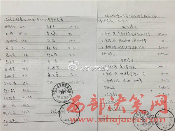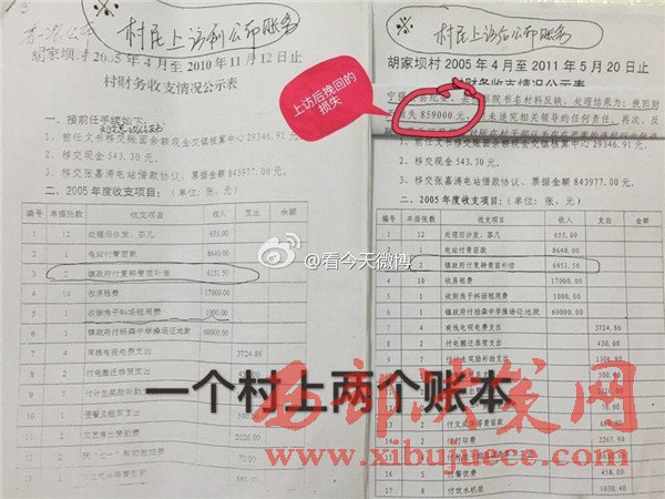 據(jù)實(shí)名舉報(bào)材料了解,早在2011年5月16日,經(jīng)群眾上訪,寧強(qiáng)縣縣紀(jì)委、縣檢察院就對(duì)黨支部書記劉全忠作出過(guò)處理,挽回財(cái)產(chǎn)損失859000元,但并未追究其法律責(zé)任。從胡家壩村公布的賬目來(lái)看,村民上訪前和上訪后僅“鎮(zhèn)政府付復(fù)耕青苗補(bǔ)償”單這一款項(xiàng)就有300元的出入。一個(gè)村子竟然存在兩本財(cái)政收支賬目,到底哪本賬才是胡家壩村真正的財(cái)政收支賬目呢?為什么要做兩本性質(zhì)相同的賬?會(huì)不會(huì)該村還有第三本賬?