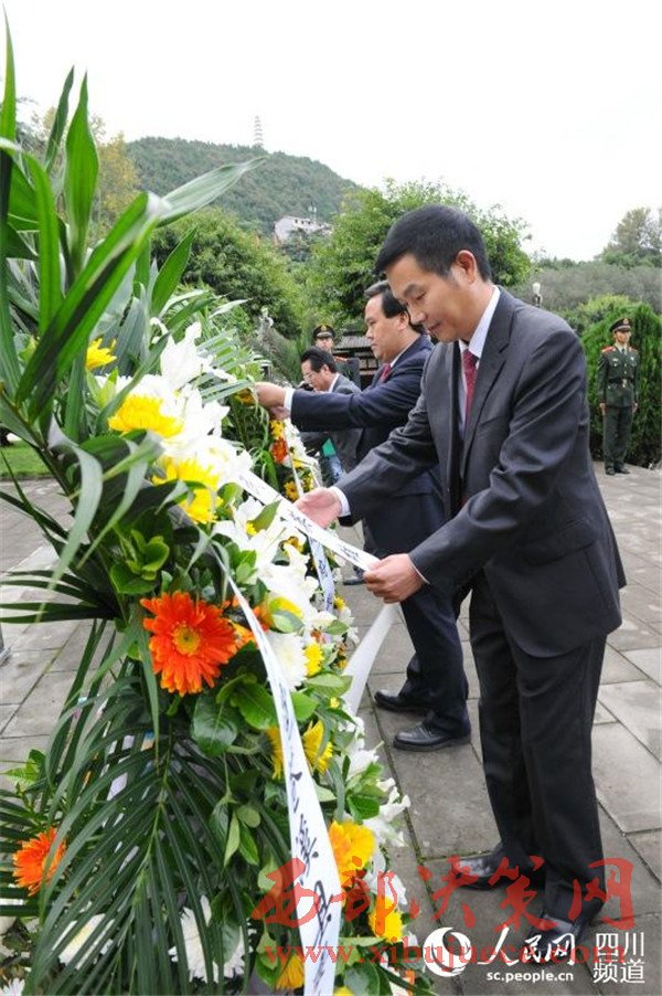 蒼溪縣委主要領(lǐng)導(dǎo)向革命先烈敬獻(xiàn)花籃