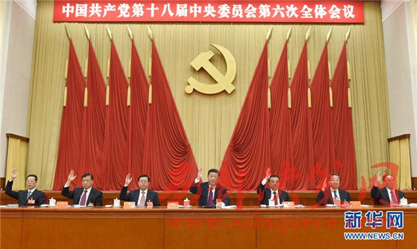 中國(guó)共產(chǎn)黨第十八屆中央委員會(huì)第六次全體會(huì)議,于2016年10月24日至27日在北京舉行。中央政治局主持會(huì)議。 新華社記者 龐興雷 攝