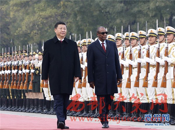 習(xí)近平指出,幾內(nèi)亞是撒哈拉以南非洲地區(qū)第一個同新中國建立外交關(guān)系的國家。57年來,雙方始終真誠友好、平等相待,在涉及彼此核心利益和重大關(guān)切問題上一貫相互理解和支持,兩國友好合作關(guān)系經(jīng)受住了國際風(fēng)云變幻的考驗(yàn),歷久彌堅(jiān)。中方愿同幾方一道,充分發(fā)揮兩國傳統(tǒng)友好和經(jīng)濟(jì)互補(bǔ)兩大優(yōu)勢,為發(fā)展全面戰(zhàn)略合作伙伴關(guān)系不斷注入新動力。