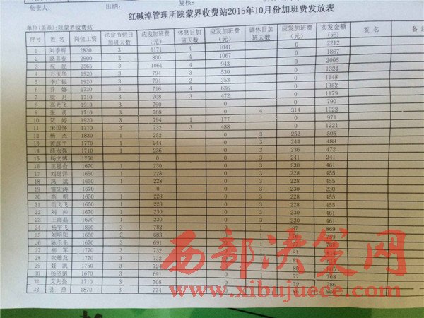 紀(jì)委王姓負(fù)責(zé)人告訴西部大開發(fā)雜志社記者菜價偏高確實從在,人已經(jīng)換掉,正在調(diào)查中,他們公司并未下過處罰,也未發(fā)現(xiàn)篡改考勤一事,不存在套取國家國有資金,并且給西部大開發(fā)雜志社記者拿出一塔資料,這就是陜蒙界收費(fèi)站的考勤表,西部大開發(fā)雜志社記者看到考勤表上確實沒有任何涂改痕跡,其中陜蒙界收費(fèi)站劉站長的上班天數(shù)也是23天。西部大開發(fā)雜志社記者想要查看工資發(fā)放表格時,得到結(jié)果還是無權(quán)了解。