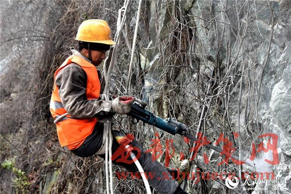 北京大山里的蜘蛛人網(wǎng)住懸崖保行車安全