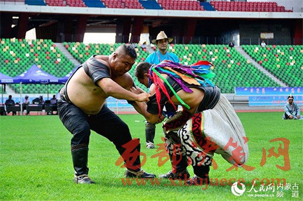 鄂爾多斯市“四季時尚”那達(dá)慕活動之一——第三屆鄂爾多斯國際那達(dá)慕大會搏克比賽精彩紛呈。