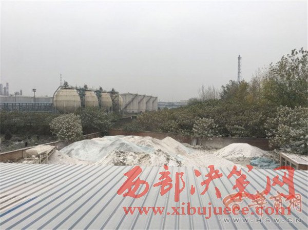 記者觀察附近建筑物,發(fā)現(xiàn)還有部分房頂上鋪滿白色粉塵,而樹上的樹葉也都是白的。知情人說,煤場旁邊的巷子里還有個(gè)灰場。