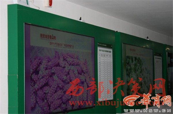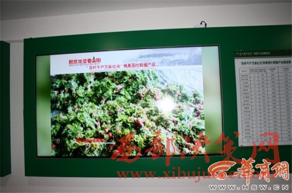 在山陽扶貧開發(fā)局辦公場所走廊,一側(cè)墻上安裝有6臺液晶電視看上去很顯眼,滾動播放著扶貧圖片和相關(guān)數(shù)據(jù)。