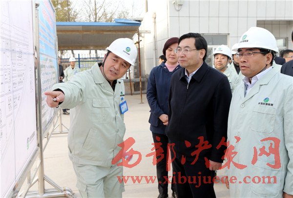 11月19日,省長胡和平(右二)在陜西華浩軒公司視察調(diào)研,右一為中陜核集團董事長張斌成,左二為永壽縣委書記蘇曉梅。
