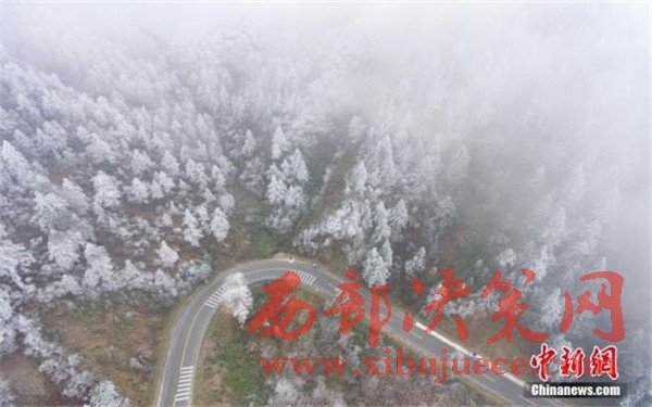 11月24日,航拍雷公山霧凇景觀。據(jù)貴州省氣象臺預報,受強冷空氣影響,貴州省大部地區(qū)降溫幅度都在8到16℃之間,部分地區(qū)出現(xiàn)雨夾雪。位于貴州省雷山縣的雷公山國家森林公園出現(xiàn)霧凇景觀,美不勝收。