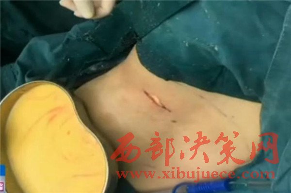 醫(yī)生說(shuō),這位女士使用的隆胸材料叫奧美定,2006年國(guó)家就禁止使用了。奧美定一方面致癌,另一方面具有游走性,與人體是不相容的,做各種運(yùn)動(dòng)的時(shí)候腔隙可能會(huì)打開,然后就跑道肚子上,腋下等部位。