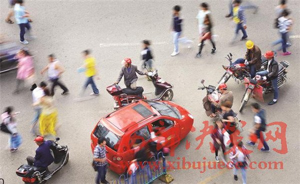 (沒有整治前。進(jìn)入火車站前的道路上,商販的推車構(gòu)成兩條直直的長線。資料圖)