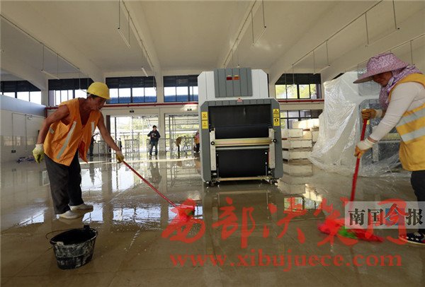 下月5日,全國鐵路調(diào)圖,將有7對普速列車改停柳江站。作為柳州市區(qū)范圍內(nèi)的第二個客運(yùn)火車站,柳江站的改造項目已進(jìn)入尾聲,安檢掃描儀也搬進(jìn)了候車室。圖為工人昨日在車站進(jìn)行地面清潔,為迎接四方旅客做好準(zhǔn)備。
