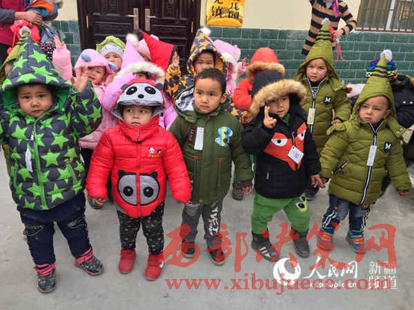 12月12日,新疆溫宿縣吐木秀克鎮(zhèn)尤喀克斯日木村應(yīng)急雙語幼兒園里暖意融融。32名小朋友穿上了遠在千里之外的浙江舟山市叔叔阿姨們寄來的冬衣褲。