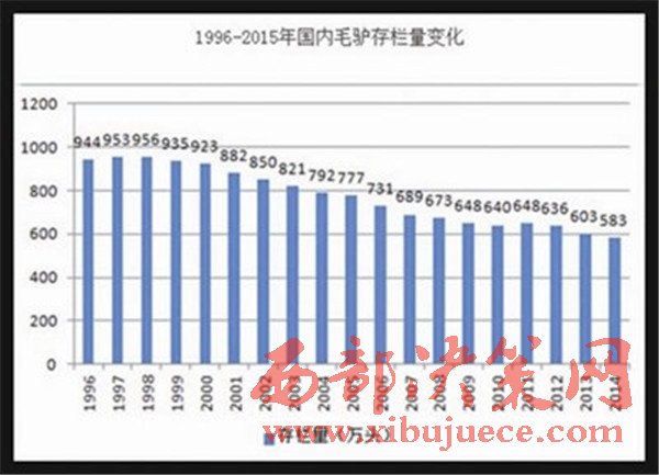 1996-2015年國內(nèi)毛驢存欄量變化