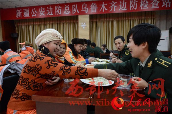 包餃子、聊家常、串門子……12月16日,新疆邊防總隊烏魯木齊邊防檢查站迎來了烏魯木齊市迎賓路街道辦的41位環(huán)衛(wèi)工人們,并與他們結(jié)成了對子,成為了“親戚”。