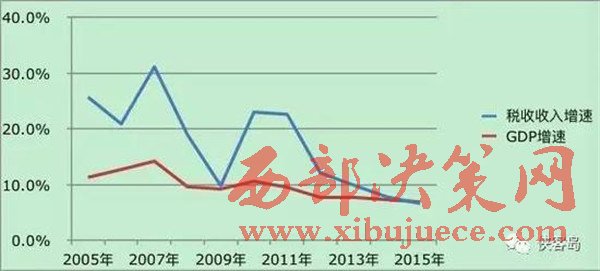 島妹整理了過去十年的稅收收入增速與GDP增速,趨勢大體一致。但在絕大多數(shù)年份,稅收增速都遠(yuǎn)高于GDP增速。例如,2010年后的5年,經(jīng)濟(jì)增速下滑, 下行壓力增大,企業(yè)也遭遇了成本升高、利潤下降的現(xiàn)實(shí)困境,然而除了稅收收入增速依然高于GDP增速,直到去年,隨著大量企業(yè)盈利能力繼續(xù)下降、經(jīng)濟(jì)“脫 實(shí)向虛”的問題更為嚴(yán)重,稅收收入增速才略低于后者0.3個百分點(diǎn)。