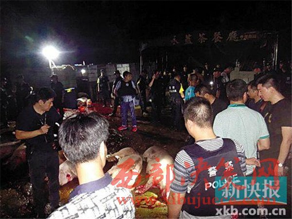 簡(jiǎn)陋的棚子、污水橫流、滿地豬血、隨意擺放的工具……這是私宰生豬場(chǎng)的真實(shí)場(chǎng)景。新快報(bào)12月21日?qǐng)?bào)道,深圳警方查處一私宰豬肉犯罪團(tuán)伙。據(jù)悉,在廣東省深圳市、東莞市,藏匿著5個(gè)生豬私宰窩點(diǎn),警方此次行動(dòng)繳獲作案車輛20余臺(tái),抓獲嫌疑人42名,繳獲私宰生豬150余頭,合約2.6萬斤。此次行動(dòng)是深圳近年來破獲的打擊處理人數(shù)最多,唯一實(shí)現(xiàn)產(chǎn)、運(yùn)、銷全鏈條打擊的私宰案件。