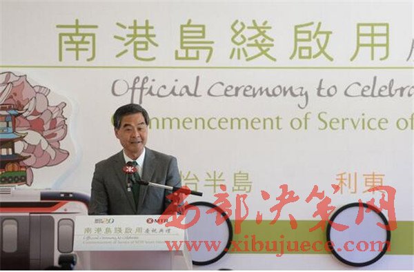 梁振英在致辭時(shí)表示,他一直是香港鐵路服務(wù)的“粉絲”,十分樂(lè)于見(jiàn)證新的鐵路交通線(xiàn)的啟用。此前開(kāi)通的觀塘線(xiàn)沿線(xiàn)以及此次南港島線(xiàn)東段的啟用,都將令香港的鐵路網(wǎng)絡(luò)更加四通八達(dá)。