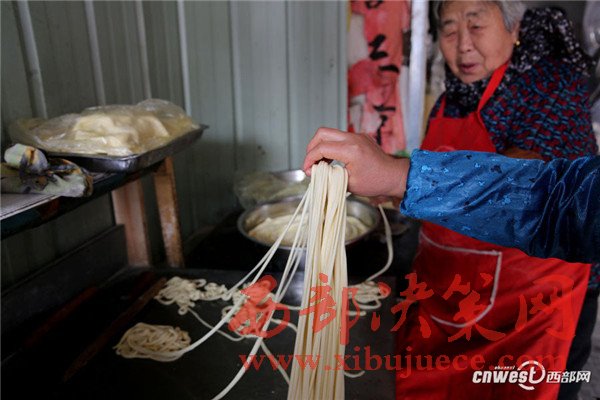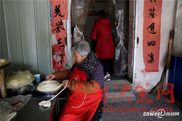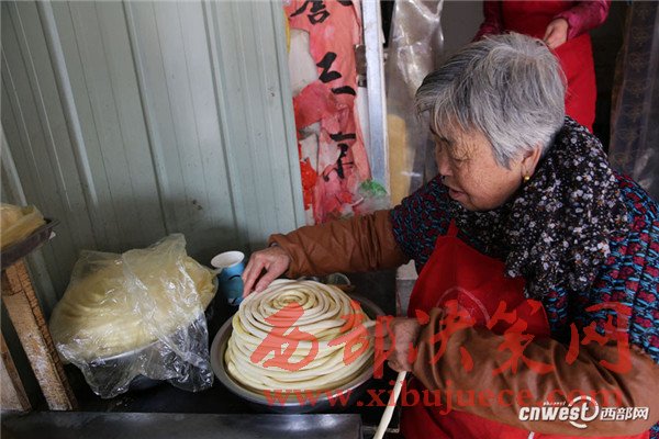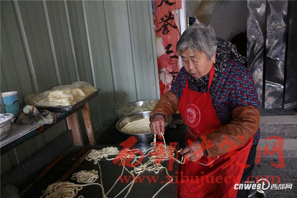 西安南二環(huán)附近的一條小巷里,新安醫(yī)院門口,70歲的賀玉蘭老人和兒媳劉艷寧在她們的實惠面館里忙碌著,揉面、拉條子、下面、給食客端面,婆媳倆默契得就像一個人,“二人成一心,黃土變成金。” 賀玉蘭老人喜歡老家蒲城的這句老話。