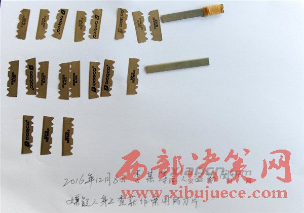 民警查獲的犯罪嫌疑人作案用刀片若干。