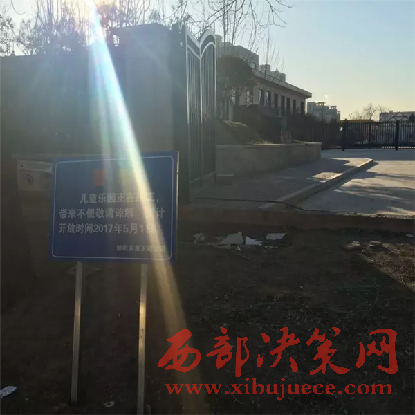 記者:我現(xiàn)在的位置是在四季星河路甲1號,也就是規(guī)劃中朝陽區(qū)兒童主題公園的園區(qū)?,F(xiàn)在我看到的情況是確實像朝陽區(qū)園林綠化局相關(guān)負責(zé)人說的那樣,園區(qū)的北門和東門已經(jīng)是開放的,門口豎著一塊牌子,上面寫著“兒童公園正在施工,帶來不便敬請諒解。預(yù)計開放時間是2017年5月1日,落款是朝陽兒童主題公園”。在兩周的前我到這個園區(qū)來還能聽到現(xiàn)場有施工的聲音,目前施工已經(jīng)停下來了,園區(qū)處于一個半開放狀態(tài)。