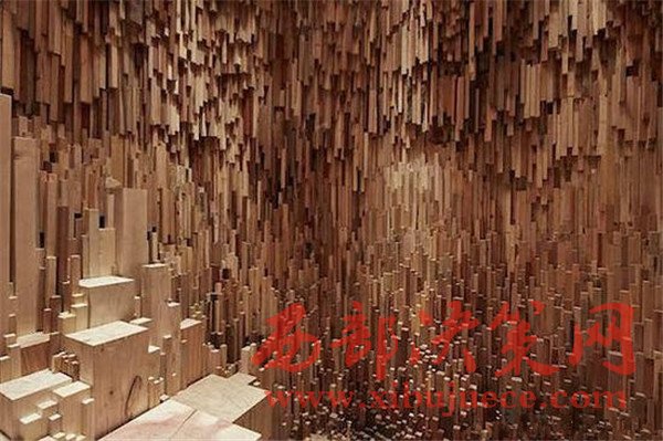 空心這個(gè)交互式裝置是藝術(shù)家Katie Paterson和建筑家Zeller & Moye的作品。該作品由10000多塊跨越百萬(wàn)年的木材制成。它們被切成木板,之后雕成鐘乳石的形狀,掛在天花板上,為參觀者聽(tīng)過(guò)獨(dú)特的,步行參觀體驗(yàn)。