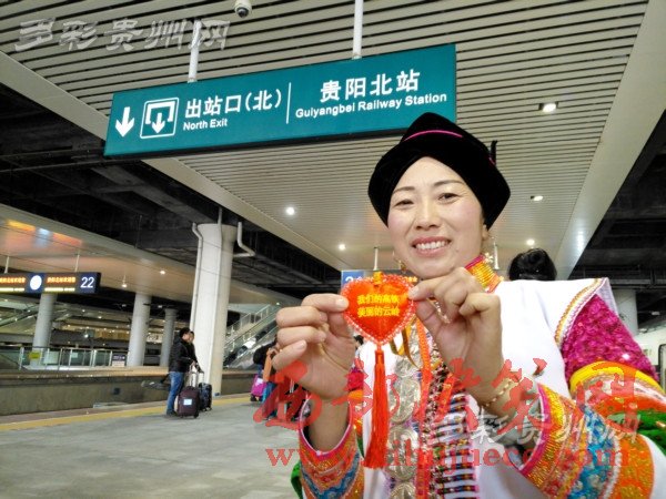 作為首批搭乘高鐵進(jìn)入貴陽的昆明客人,趙榮芳收到了小禮物,上面寫著“我們的高鐵,美麗的云嶺”