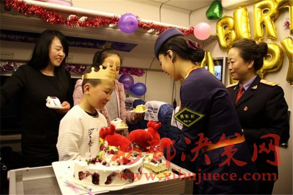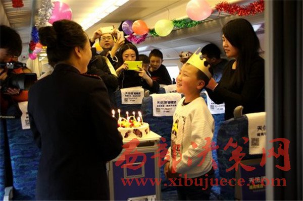 “祝你生日快樂”,2月5日,在蘭州西開往西寧的D2723次列車上,為一對(duì)“天路母子”舉行的別樣生日聚會(huì)引得網(wǎng)名點(diǎn)贊無數(shù)。