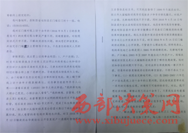2016年12月14日,魯鋼軍來到旬陽縣紀(jì)委,向現(xiàn)任旬陽縣紀(jì)委書記付波反映該事件,付書記給予書面登記,并口頭承諾盡快解決。