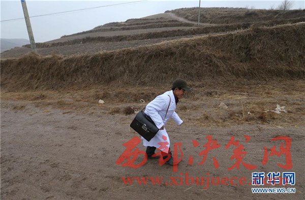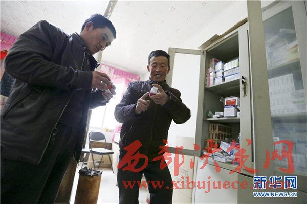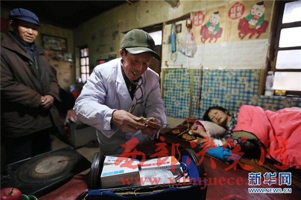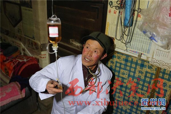 村醫(yī)牟天明在村民家中為患者診療(2月6日攝)。大年初十,在寧夏固原市西吉縣新營鄉(xiāng)二府營村泥濘的村道上,身高不足一米六的村醫(yī)牟天明背著醫(yī)療箱,一瘸一拐地前往離家5公里的患病村民家中。春節(jié)以來,這已是他第18次出診。年近六旬的牟天明在上小學(xué)時腿部突發(fā)疾病,由于當(dāng)時鄉(xiāng)村醫(yī)療條件有限,落下了終身殘疾。他沒有失去對生活的信心,從初中開始就自學(xué)醫(yī)學(xué)知識,1977年高中畢業(yè)后,牟天明回村做了一名赤腳醫(yī)生,這一干就是40年。 40年來,牟天明行醫(yī)始終站在患者的角度,讓村民跑最少的路、花最少的錢解除病痛。不論白天黑夜、風(fēng)霜雨雪,只要村民有需要,他就會背上醫(yī)療箱出診,足跡遍及二府營村的每一戶人家,被村民稱為村里的健康“守護神”。