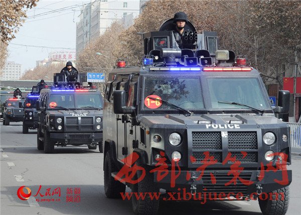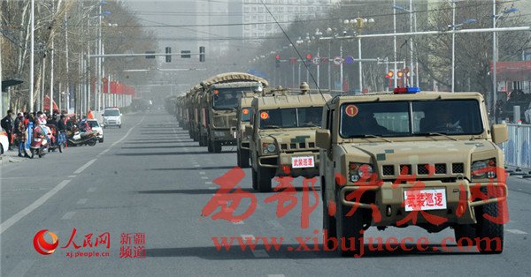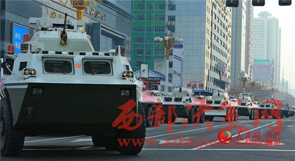 隨著一聲令下,戰(zhàn)士們登上戰(zhàn)車,警燈閃爍,警笛齊鳴,氣勢(shì)磅礴。一支威武之師、鋼鐵之師、正義之師吹響沖鋒號(hào),在烏魯木齊市主要街道和重點(diǎn)部位進(jìn)行武裝巡邏。