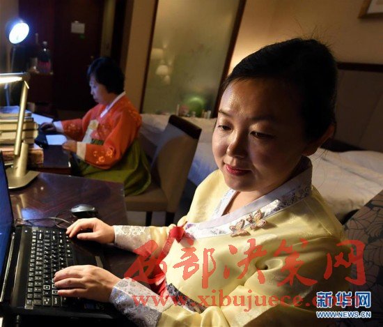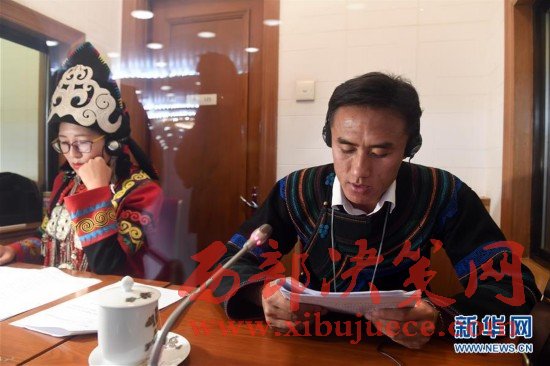 由中國民族語文翻譯局組建的十二屆全國人大五次會議和全國政協(xié)十二屆五次會議秘書處民族語文翻譯組,承擔著大會民族語文翻譯任務。他們的主要工作包括:用蒙古、藏、維吾爾、哈薩克、朝鮮、彝、壯7種民族語文進行大會文件的翻譯;負責7種民族語文大會文件的印制;舉行全體會議時,進行現場同聲傳譯;負責向北京、內蒙古、廣西、四川、西藏、青海、新疆等省區(qū)市新聞媒體提供大會主要文件的民族文譯稿等。圖為3月7日晚,民族語文翻譯組工作人員牧蘭、敖敦高娃、哈斯布日古德(從左至右)在為第二天的大會同聲傳譯做準備。