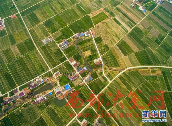這是3月12日在江蘇省南通市海安縣航拍的鄉(xiāng)村春景。