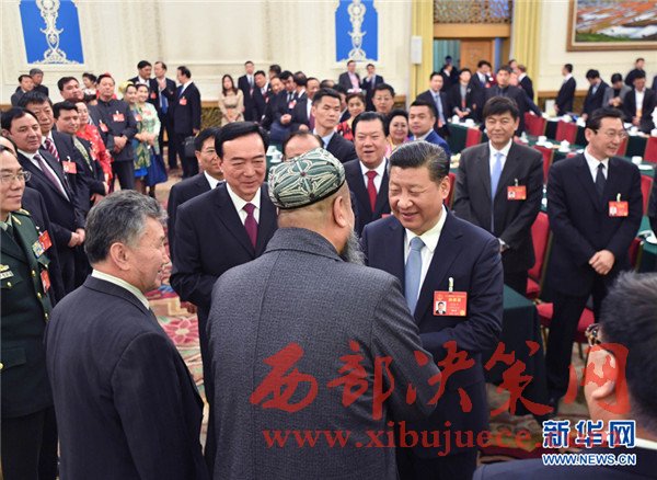 2017年3月10日,習(xí)近平在新疆代表團(tuán)參加審議時(shí)說,要全面貫徹黨的民族政策,高舉各民族大團(tuán)結(jié)旗幟,引導(dǎo)各族群眾增強(qiáng)對偉大祖國、中華民族、中華文化、中國共產(chǎn)黨、中國特色社會主義的認(rèn)同,像愛護(hù)自己的眼睛一樣愛護(hù)民族團(tuán)結(jié),像珍視自己的生命一樣珍視民族團(tuán)結(jié),像石榴籽那樣緊緊抱在一起。