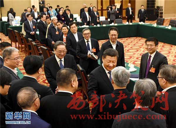 3月10日,中共中央總書(shū)記、國(guó)家主席、中央軍委主席習(xí)近平參加十二屆全國(guó)人大五次會(huì)議新疆代表團(tuán)的審議。新華社記者李濤攝