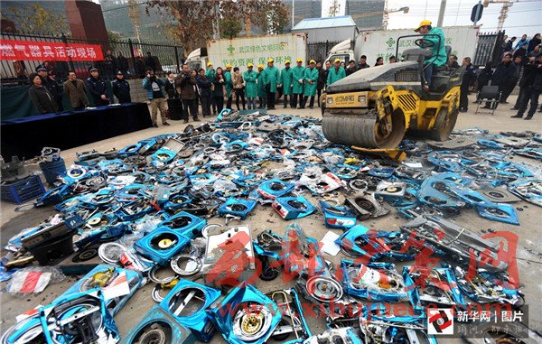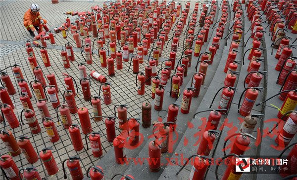 2012年11月6日,四川省成都市,一批假冒偽劣的消防滅火器被銷(xiāo)毀。當(dāng)日,四川省“119”消防宣傳周啟動(dòng)暨消防產(chǎn)品形式安檢公開(kāi)處理假冒偽劣消防器材產(chǎn)品集中銷(xiāo)毀儀式在成都舉行。