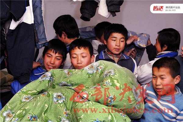 圖為2007年1月9日,固原市原州區(qū)楊郎中學,由于床鋪擁擠,學生只得4人合蓋一床棉被。