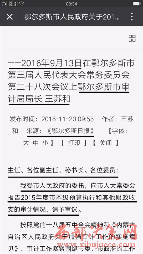 2016年9月13日在鄂爾多斯市第三屆人民代表大會(huì)常務(wù)委員會(huì)第二十八次會(huì)議上鄂爾多斯市審計(jì)局局長(zhǎng)王蘇和受市人民政府的委托,向市人大常委會(huì)報(bào)告2015年度市本級(jí)預(yù)算執(zhí)行和其他財(cái)政收支的審計(jì)情況。