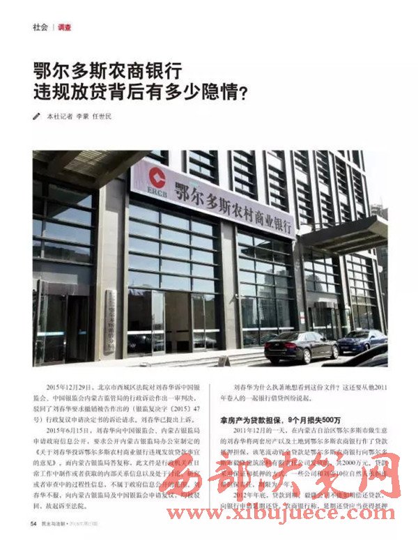 2、在內(nèi)蒙古自治區(qū)紀(jì)委監(jiān)督之下內(nèi)蒙古銀監(jiān)局查出鄂爾多斯農(nóng)商銀行發(fā)放的2000萬(wàn)、2700萬(wàn)、2900萬(wàn)三筆貸款屬于違規(guī)貸款;