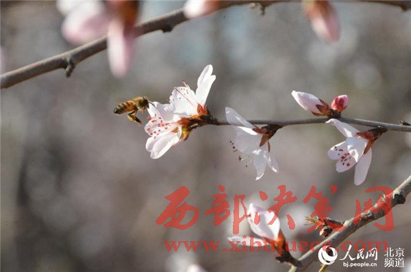 綻放的春花也吸引了蜜蜂來(lái)采蜜。