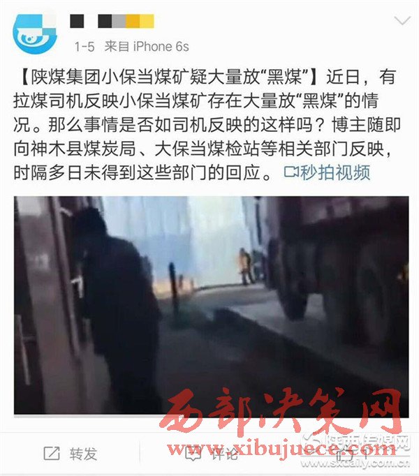 發(fā)稿前,記者又在網(wǎng)上獲悉,1月5日就有網(wǎng)民向神木縣煤炭局和大保當(dāng)煤管站反映過(guò)小保當(dāng)煤礦銷售黑煤的現(xiàn)象,該網(wǎng)民稱此事時(shí)隔多日未得到相關(guān)部門的回應(yīng)。